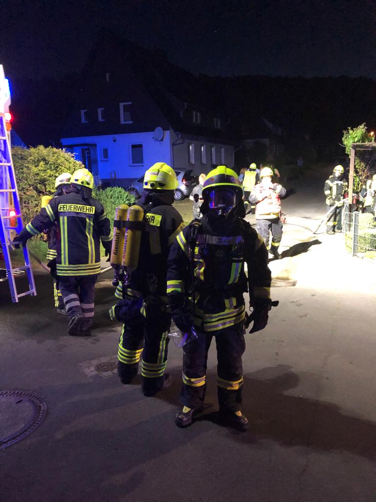 In der Hausdorfer Straße brannte ein Holzunterstand direkt neben einer Garage. Eigentümer und Anwohner hatten vor Eintreffen der Feuerwehr bereits eigene Löschversuche mit einem Feuerlöscher unternommen.