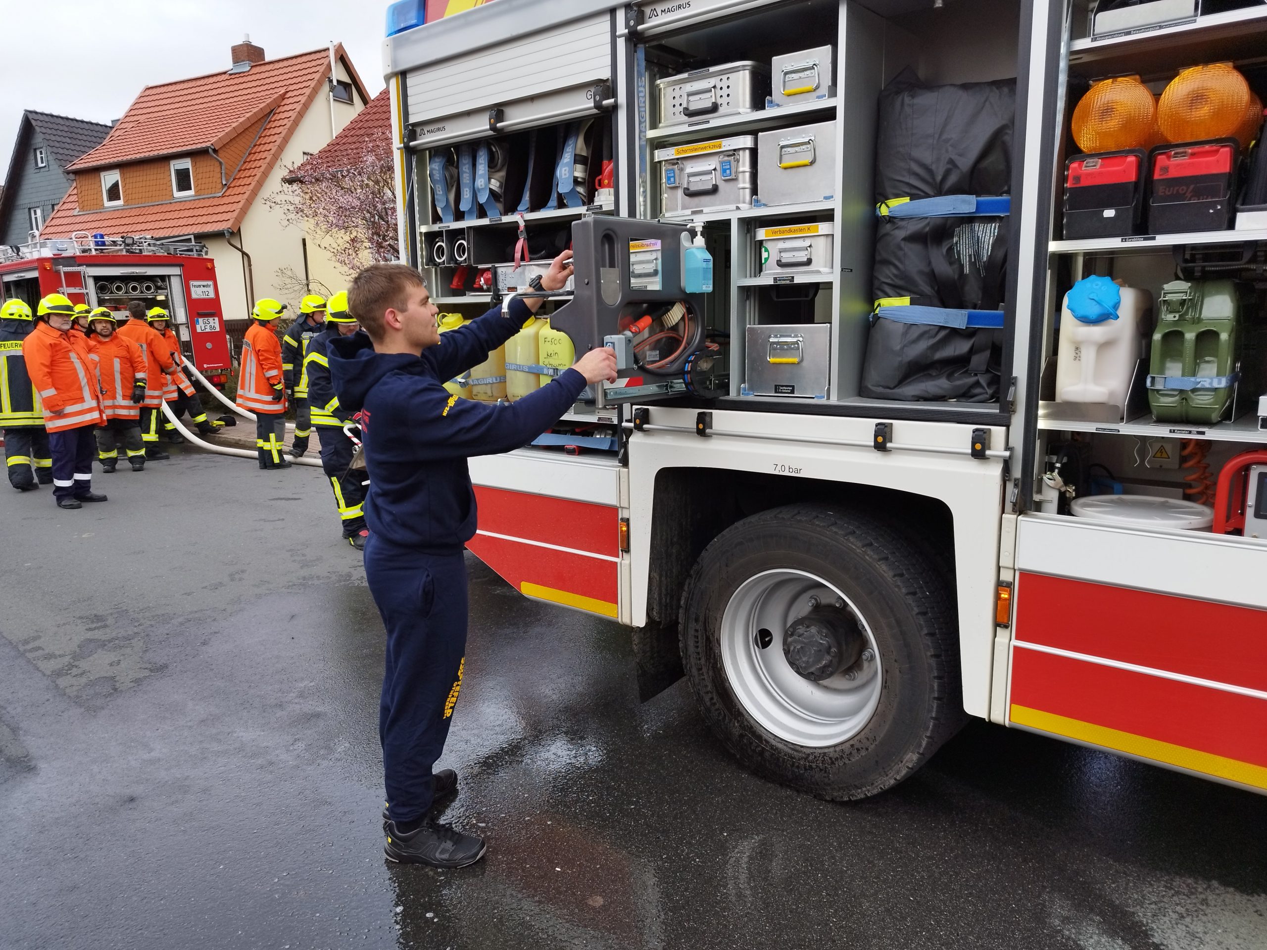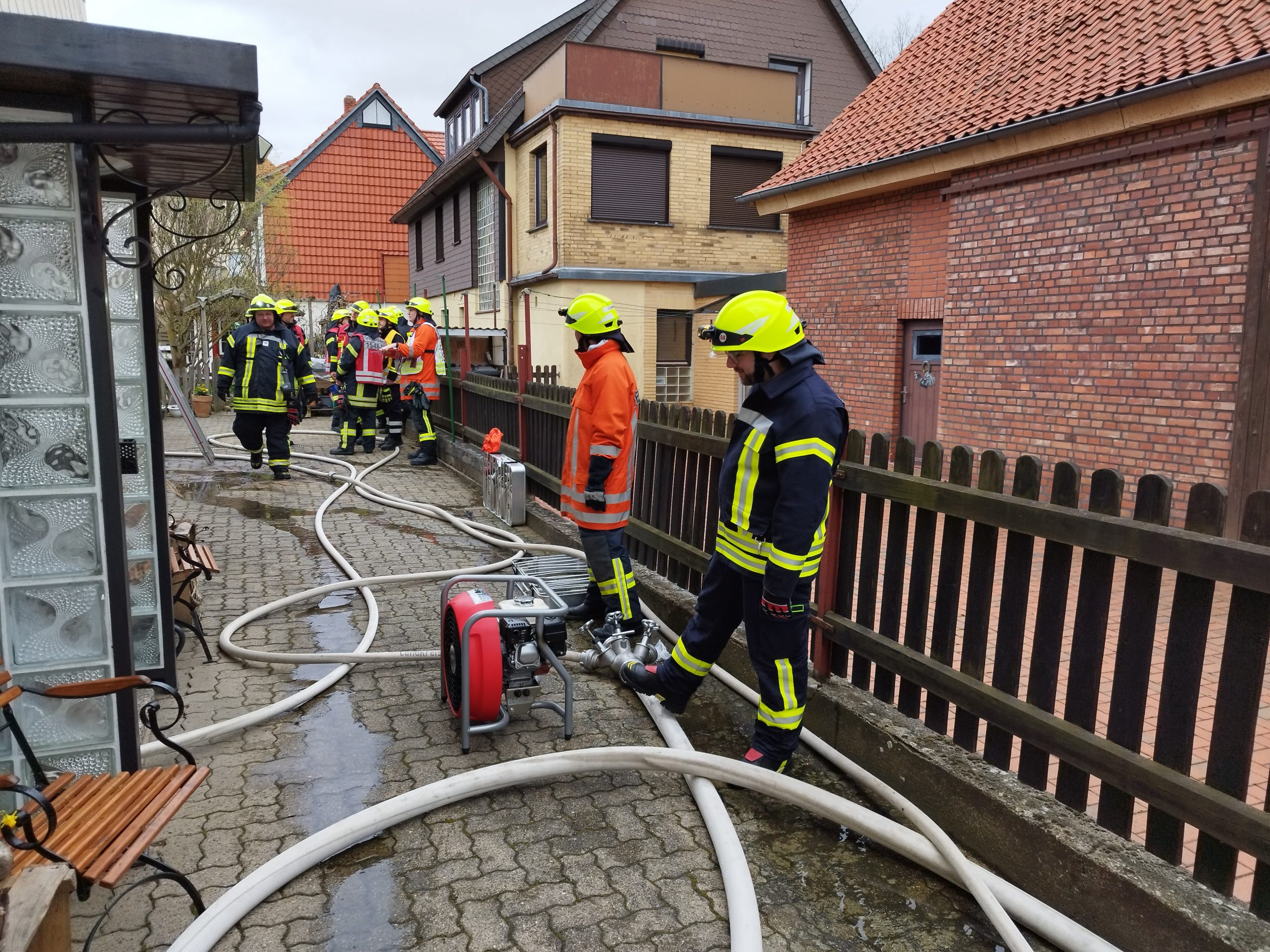 Die Feuerwehr Othfresen unterstützte mit mehreren Atemschutztrupps und stellte die Wasserversorgung zum LF 8/6 aus Dörnten sicher.