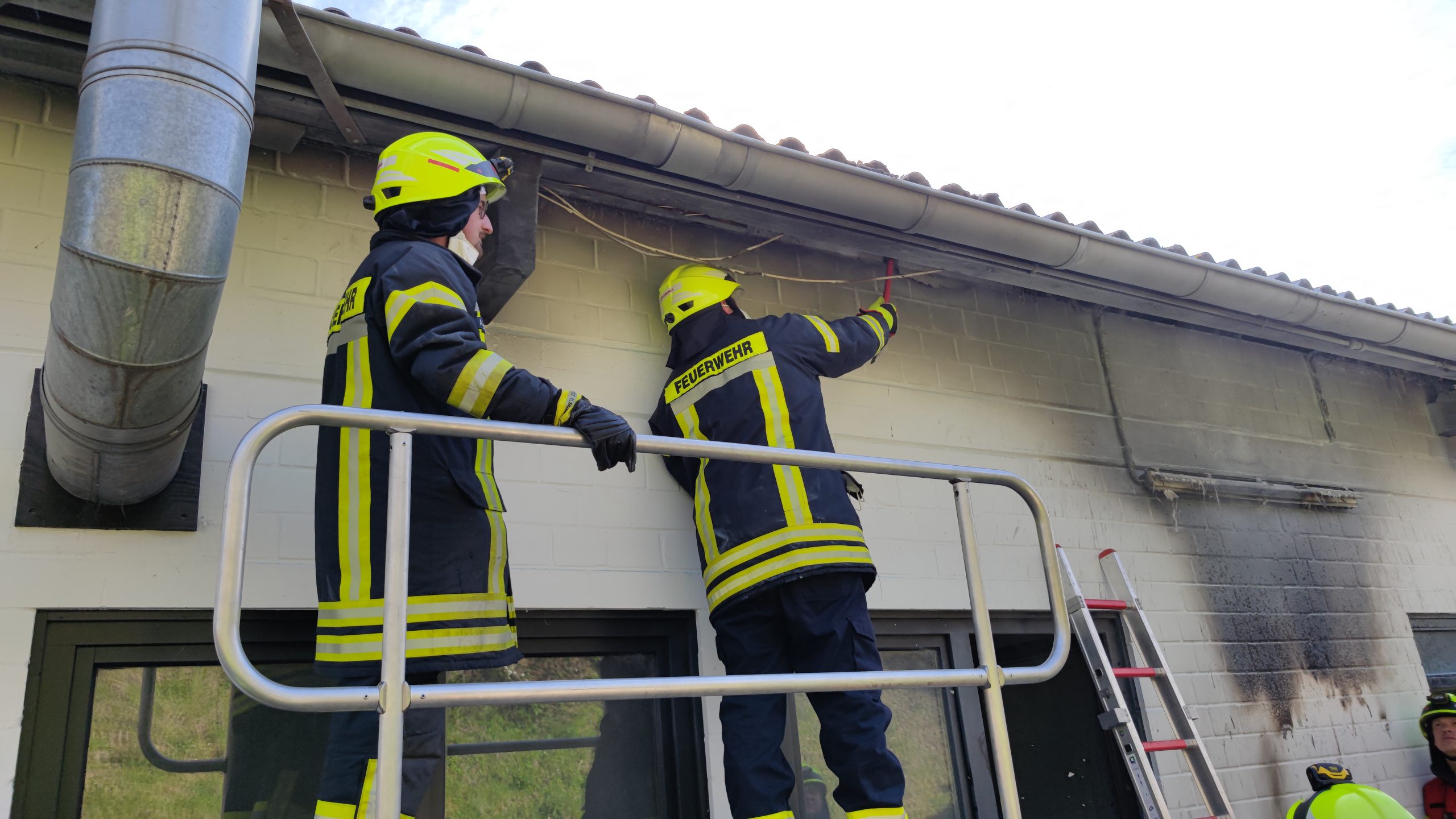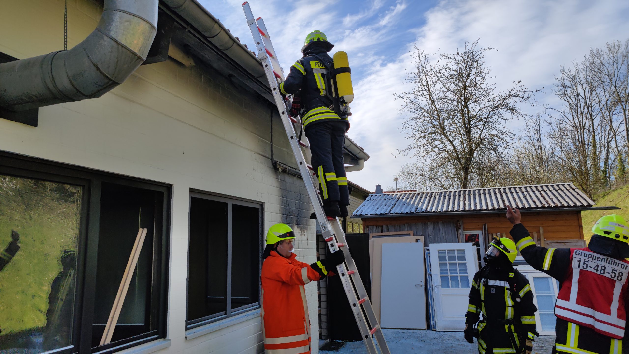Die hohe Temperatur kam durch ein glimmendes Vogelnest im Dachkasten. Nach entfernen des Nestes waren alle Messungen mit der Wärmebildkamera im Normalbereich und die Feuerwehr konnte ins Feuerwehrhaus einrücken.