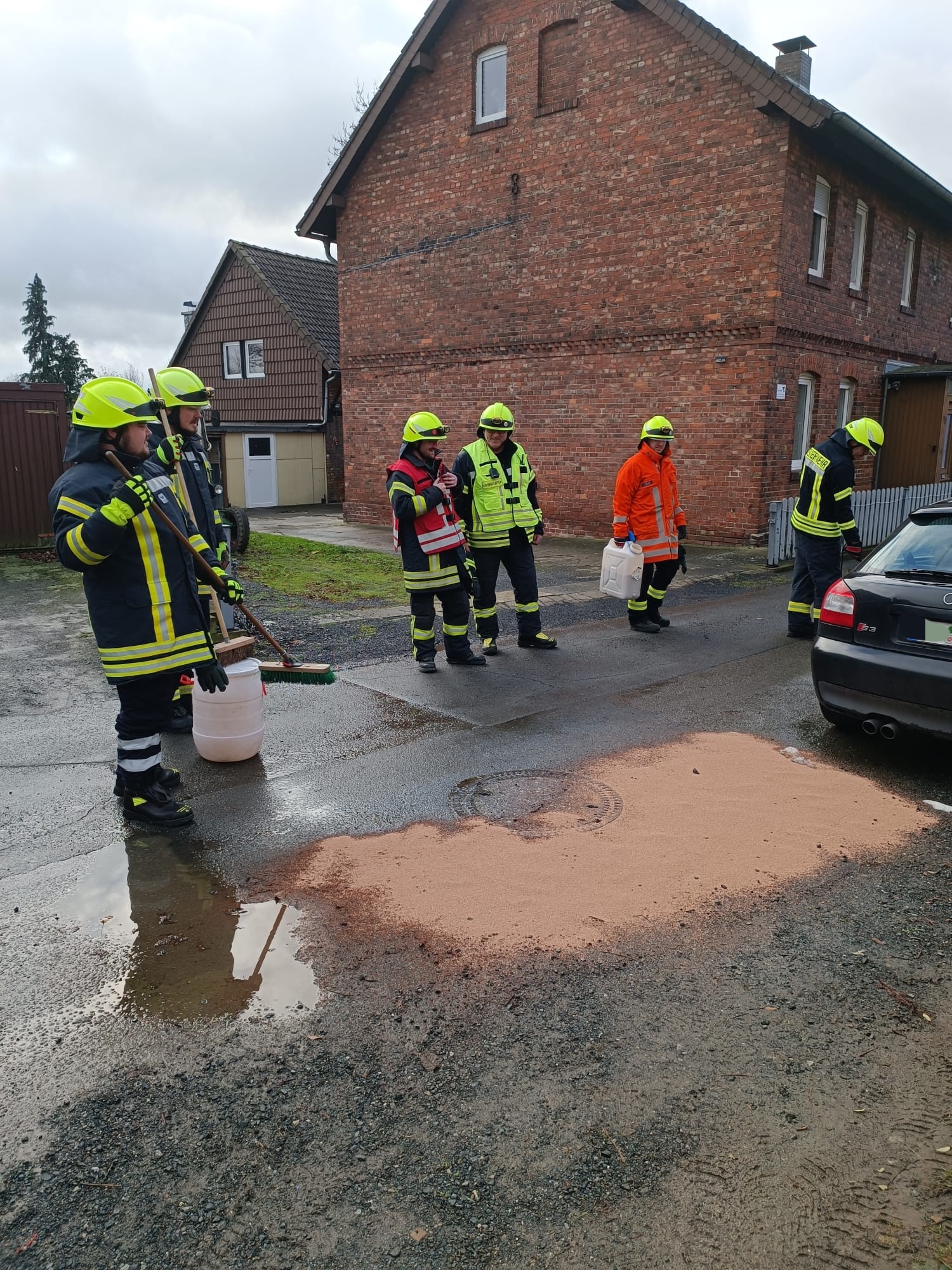 Wie bereits am Montag, wurde die Feuerwehr Othfresen über Kleinalarm zu einer Ölspur im Ortsgebiet alarmiert. Am Einsatzort waren etwa 10m² Fläche verunreinigt. Das Öl wurde mit Bindemittel aufgenommen.