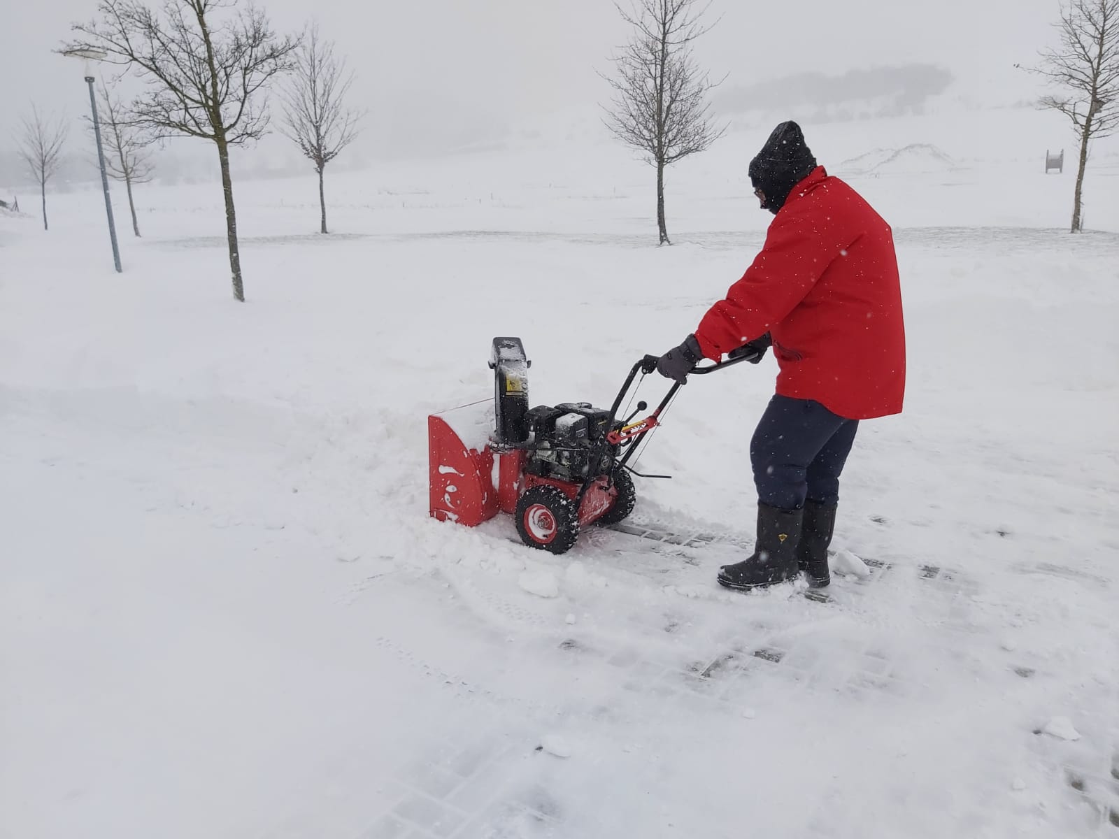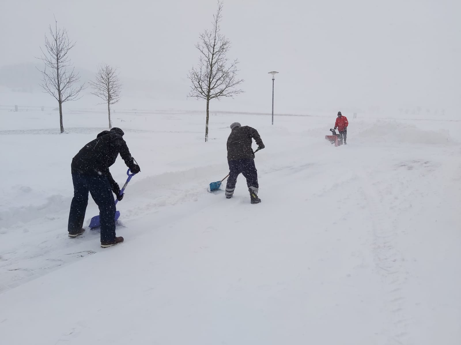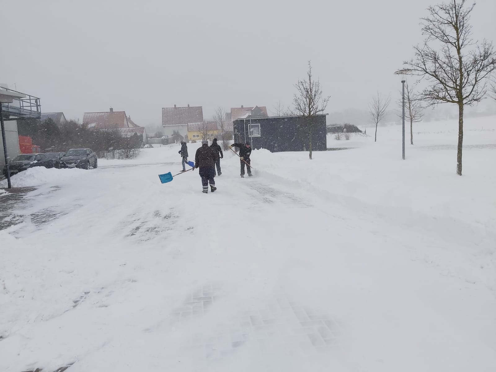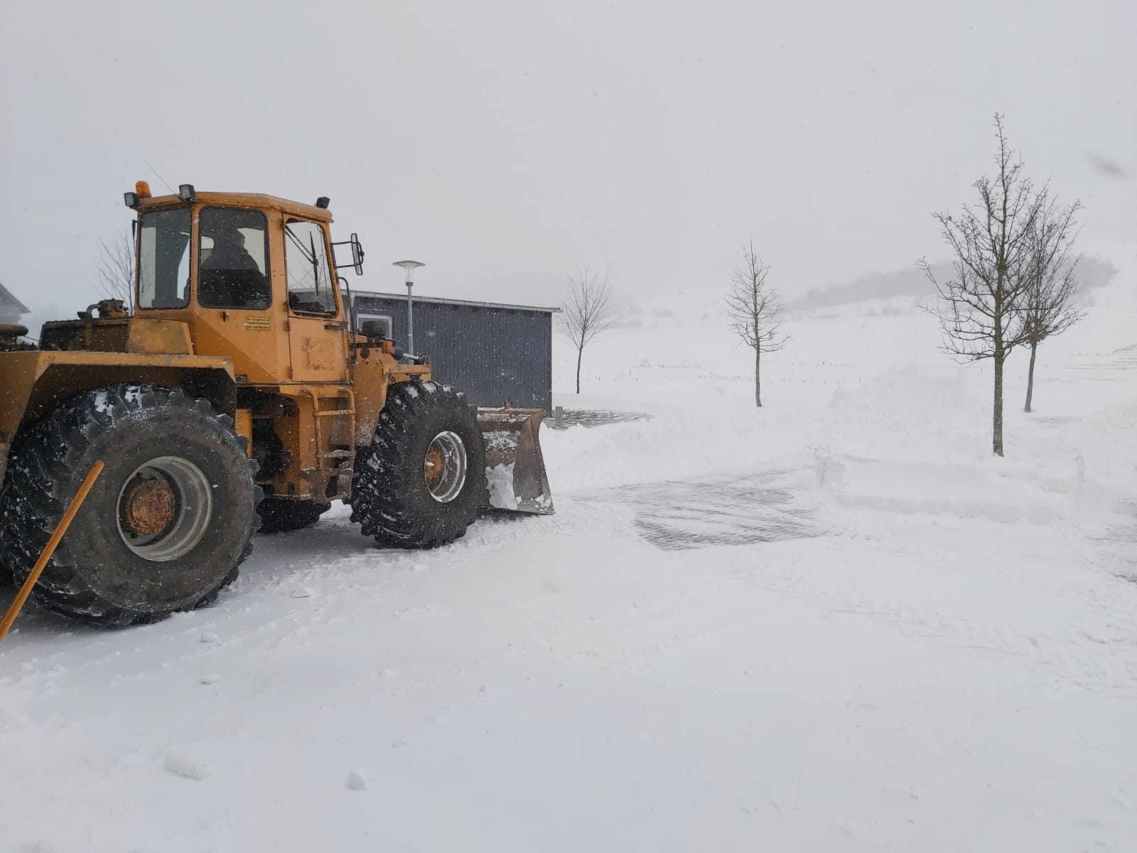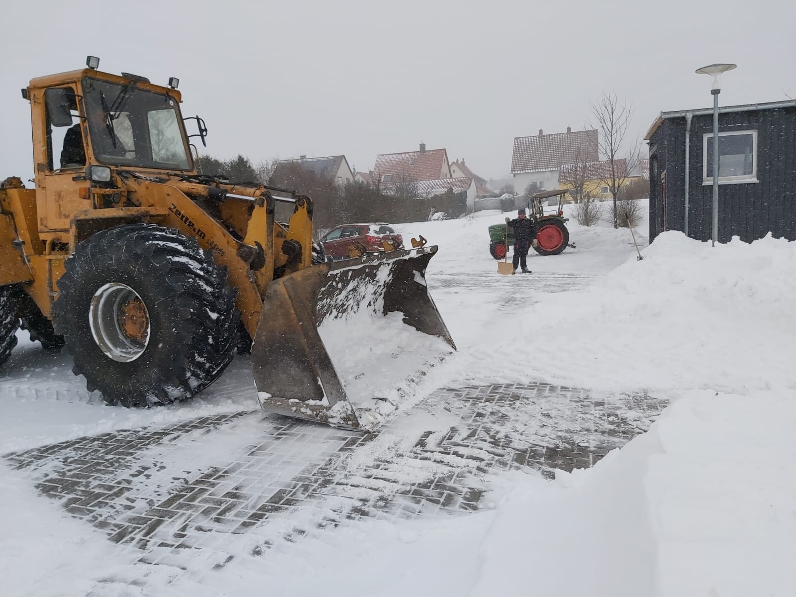 Im Anschluss wurde mit Hilfe eines Landwirtes samt Radlader und Manpower der Hof und die Parkplätze vom Schnee befreit.