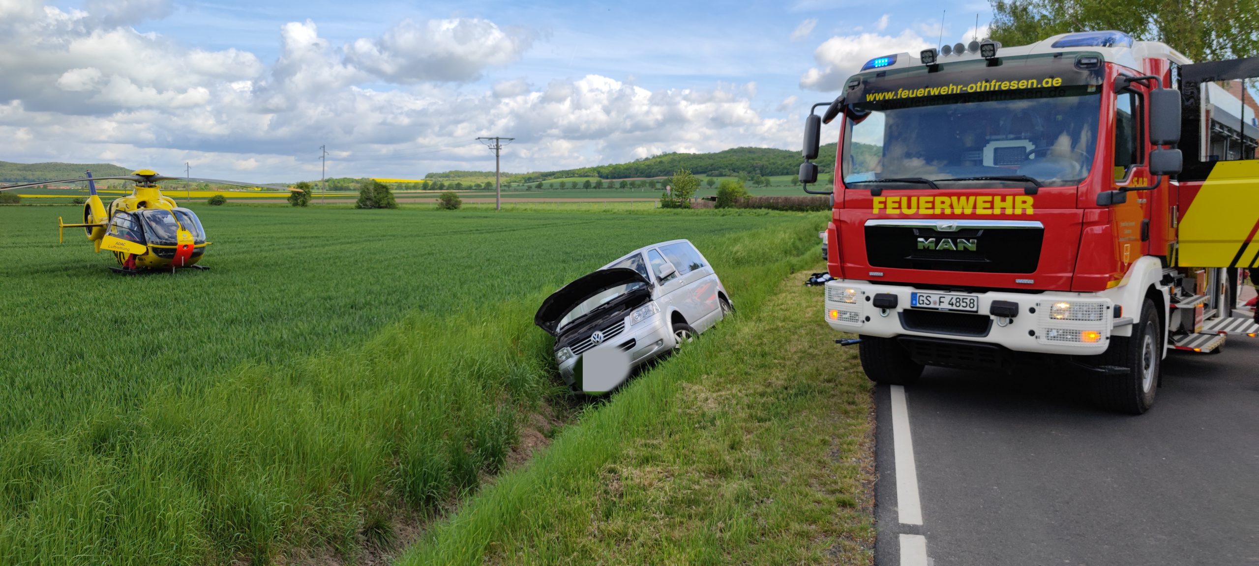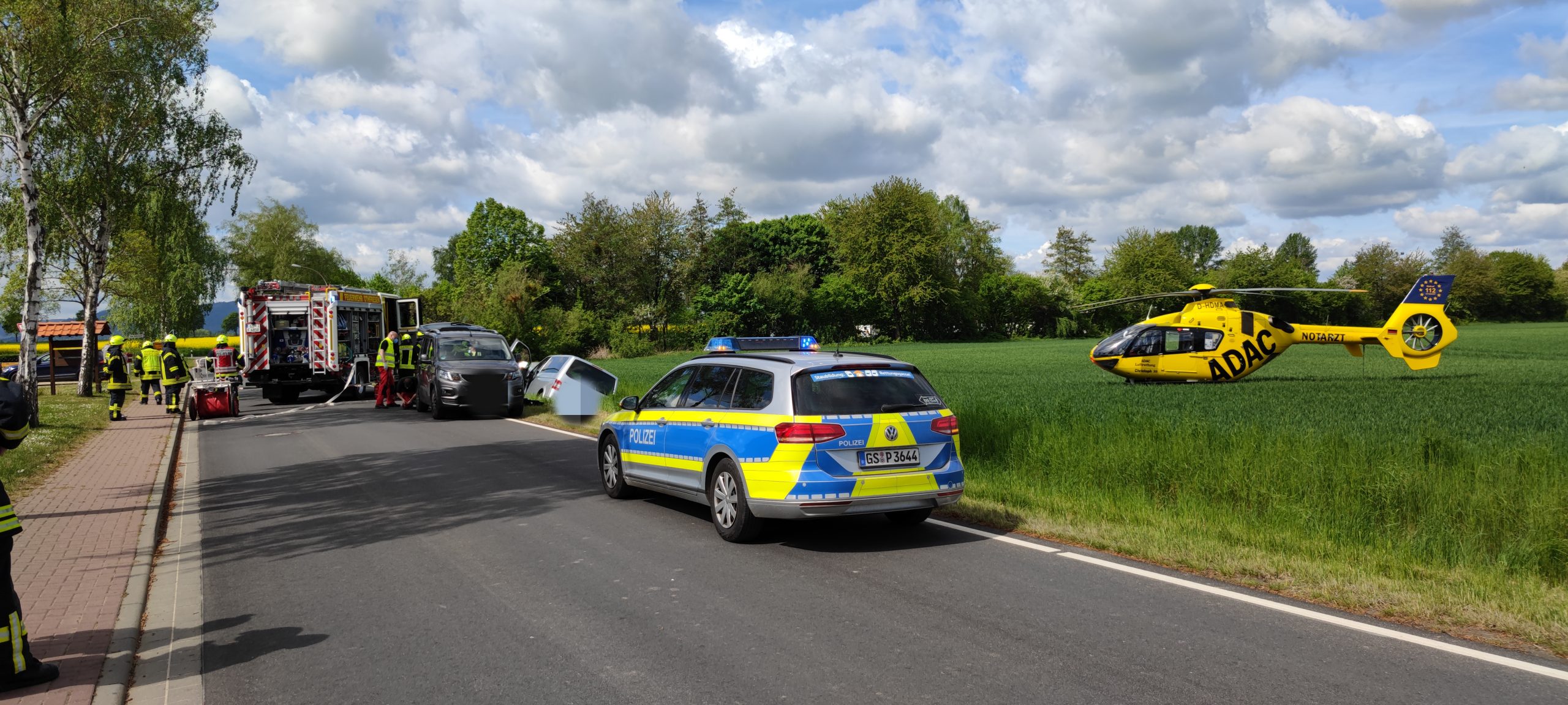Bei Eintreffen der ersten Kräfte lag ein VW-Bus auf der Seite, der Fahrer war bereits von Ersthelfern aus dem PKW befreit und betreut worden. Die Liebenburger Kräfte konnten die Einsatzfahrt abbrechen, da keine Person eingeklemmt war.