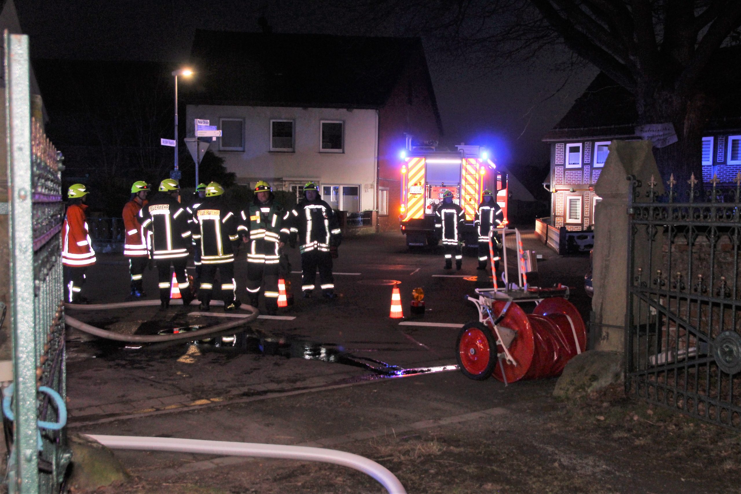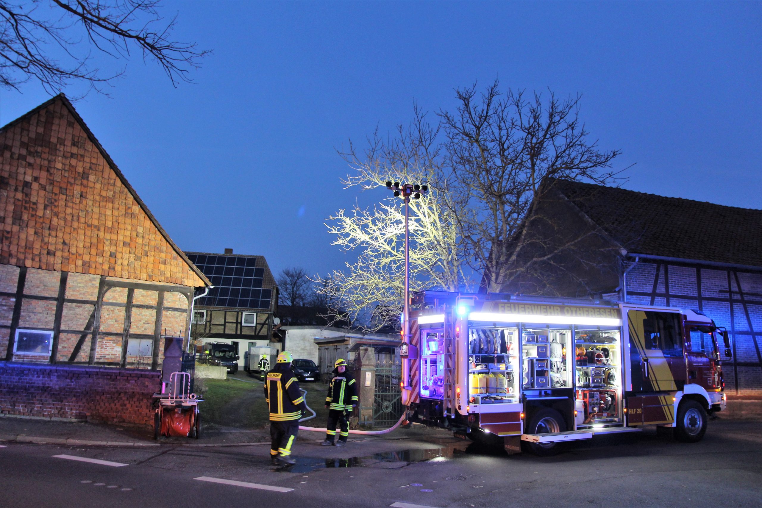 Bei der Ankunft vom Othfresener ELW war dichter schwarzer Rauch aus dem Schornstein zu erkennen. Alle Bewohner hatten das Haus bereits verlassen. Eine erste Erkundung ergab eine leichte Verrauchung des Erdgeschosses. Vorsorglich wurde vor der Haustür ein Löschangriff aufgebaut und die eingesetzten Atemschutztrupps gingen mit Kleinlöschgerät die weiteren Etagen kontrollieren. Es konnten keine erhöhten Temperaturen entlang des Kaminverlaufes gemessen werden.
