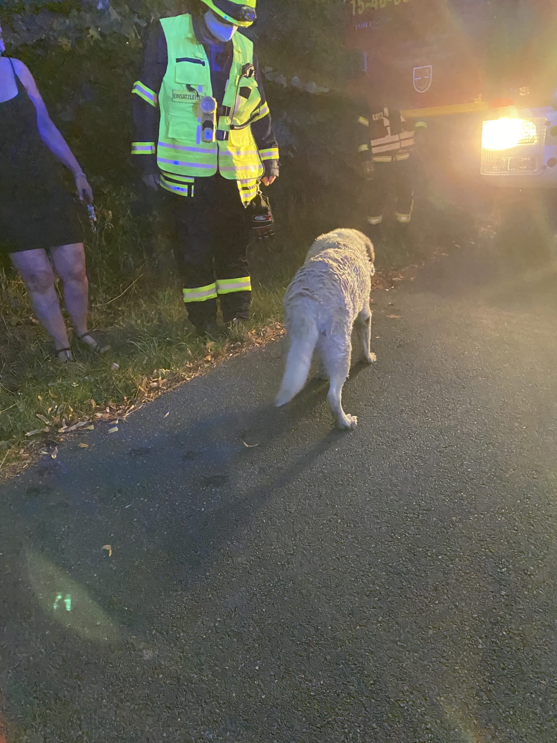 Die beiden Othfresener Ortsbrandmeister schafften es gemeinsam den Hund aus dem Wasser zu ziehen und der Labrador konnte wohlbehalten an die glückliche Besitzerin übergeben werden.