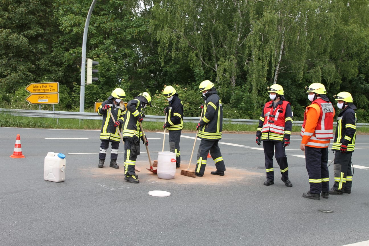 Zur Aufnahme von Betriebsstoffen wurde die Feuerwehr Othfresen alarmiert. Nach dem Eintreffen der Einsatzkräfte wurde die Einsatzstelle abgesichert, das verunfallte Motorrad an die Seite geschoben und die auslaufenden Stoffe mit Bindemittel abgestreut.