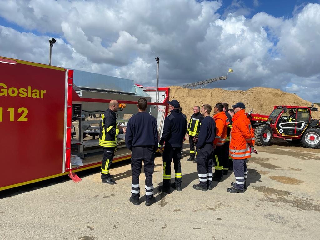 Am vergangenen Samstag traf sich der Hochwasserschutzzug der Kreisfeuerwehr Goslar, der durch die Feuerwehren Othfresen und Dörnten besetzt wird, auf dem Gelände der Firma GP Papenburg Betonwerke Nord GmbH in Harlingerode. Unterstützung erhielt der Zug durch die Kameraden aus Jerstedt, die die Fahrzeuge der FTZ besetzt und das Equipment transportiert.