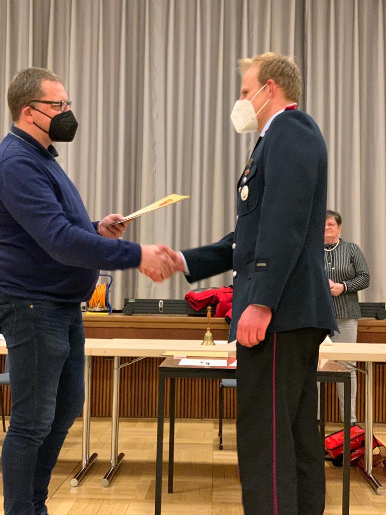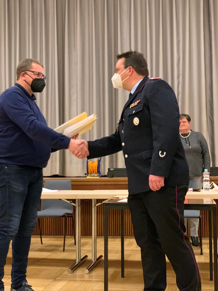 Bei einer außerordentlichen Migliederversammlung am 26.02.2022, die extra für die Wahl unter Einhaltung der geltenden Coronabestimmungen abgehalten wurde, wurden beide von den Kameraden der Feuerwehr einstimmig wiedergewählt.