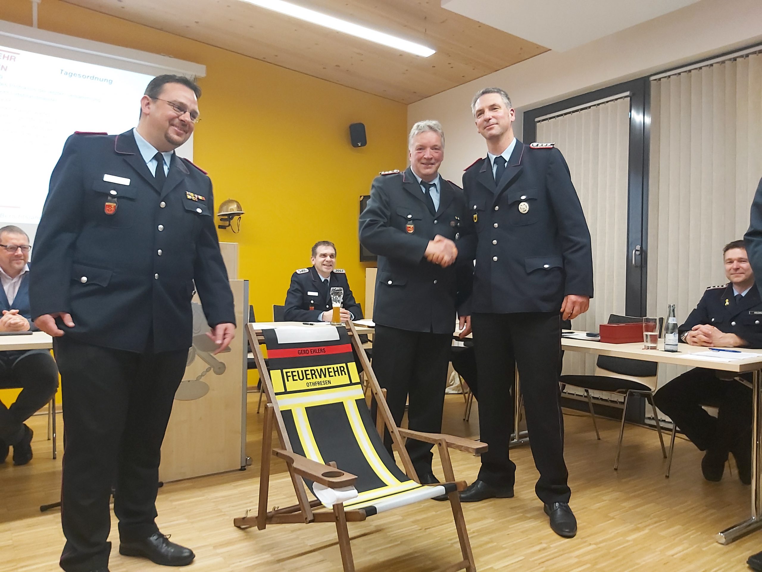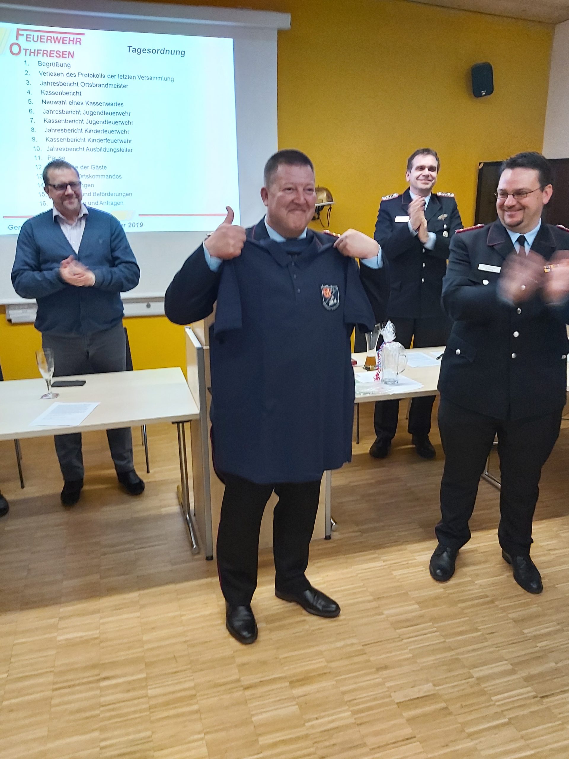 Dirk Grätz, dessen Amtszeit im März endet, wurde von den Kameraden der Feuerwehr Othfresen verabschiedet und bekam ein Poloshirt der dritten Gruppe geschenkt.