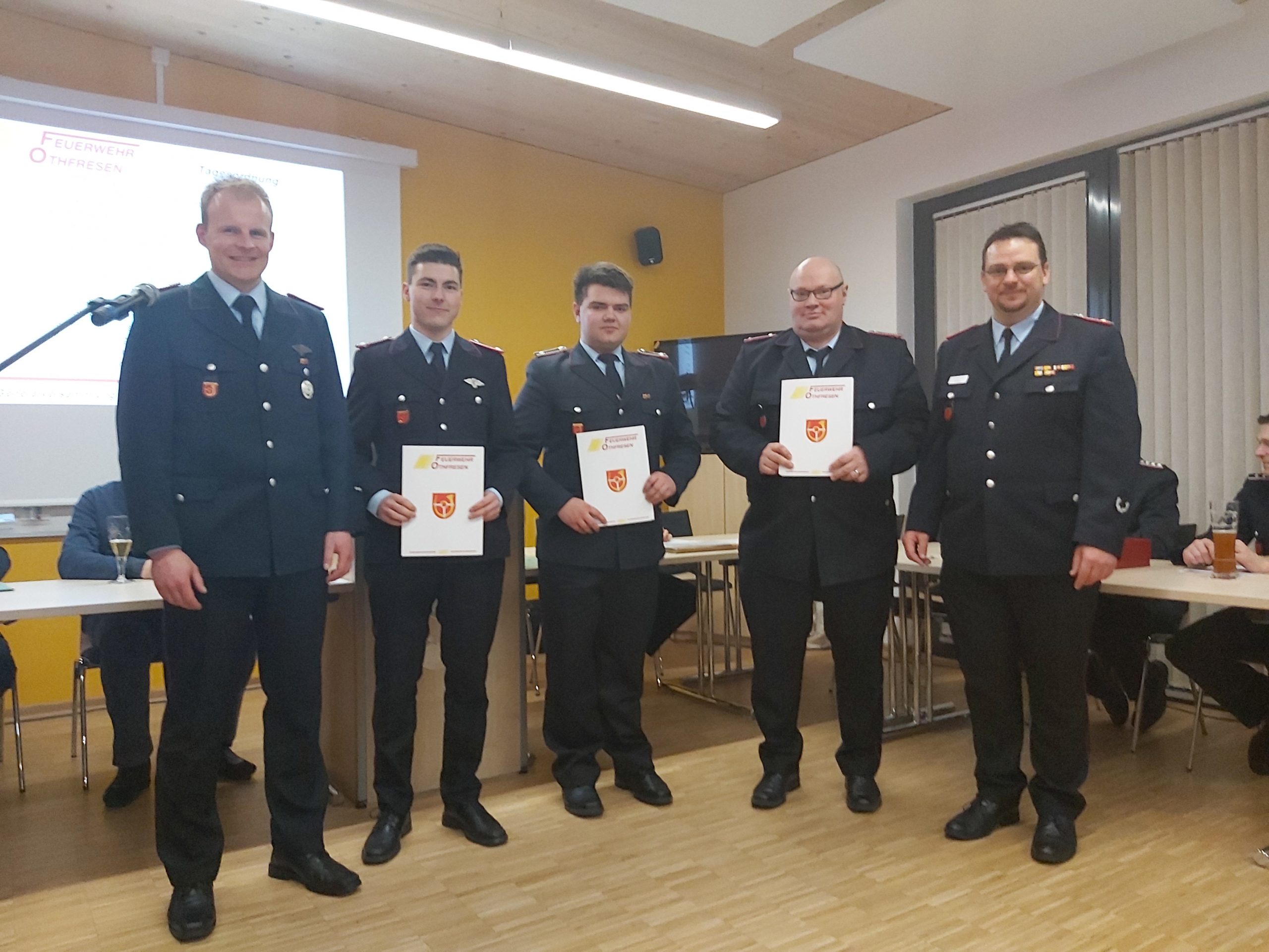 Silas Meyer, Sebastian Meinecke, Florian Knobloch und Fabian Goldschmidt wurden offiziell in die Feuerwehr Othfresen übernommen.