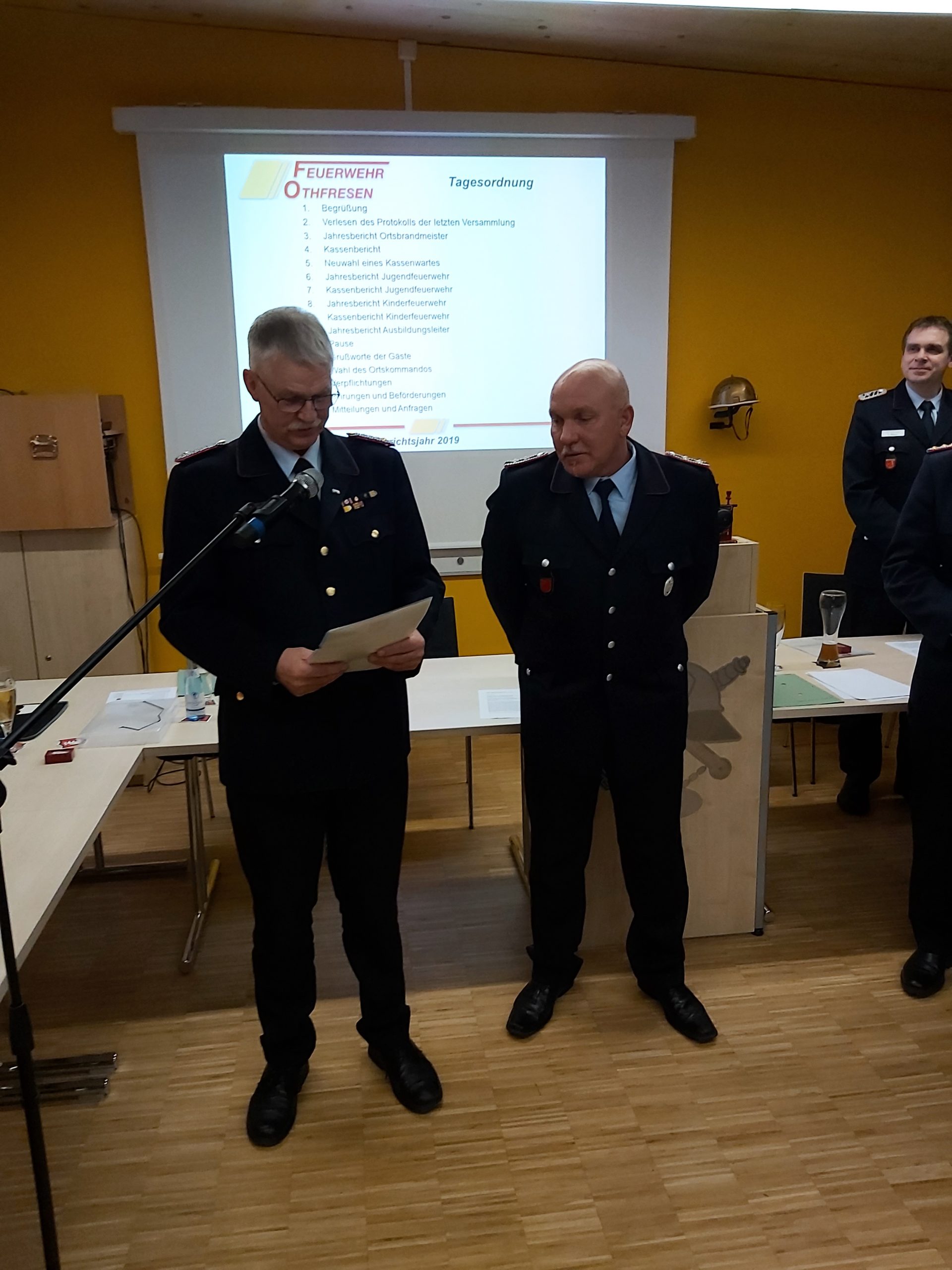 Ortsbrandmeister Dennis Dorn konnte am Samstag den 29.02.2020 mehr als 70 Mitglieder und Gäste im Feuerwehrhaus Othfresen begrüssen. Als Gäste kamen Kreisbrandmeister Uwe Fricke, Gemeindebrandmeister Dirk Grätz mit seinem Stellvertreter Christoph Schubert, Gemeindebürgermeister Alf Hesse, vom Ortsrat Othfresen Markus Tiepolt und von der Presse Andrea Leifeld.