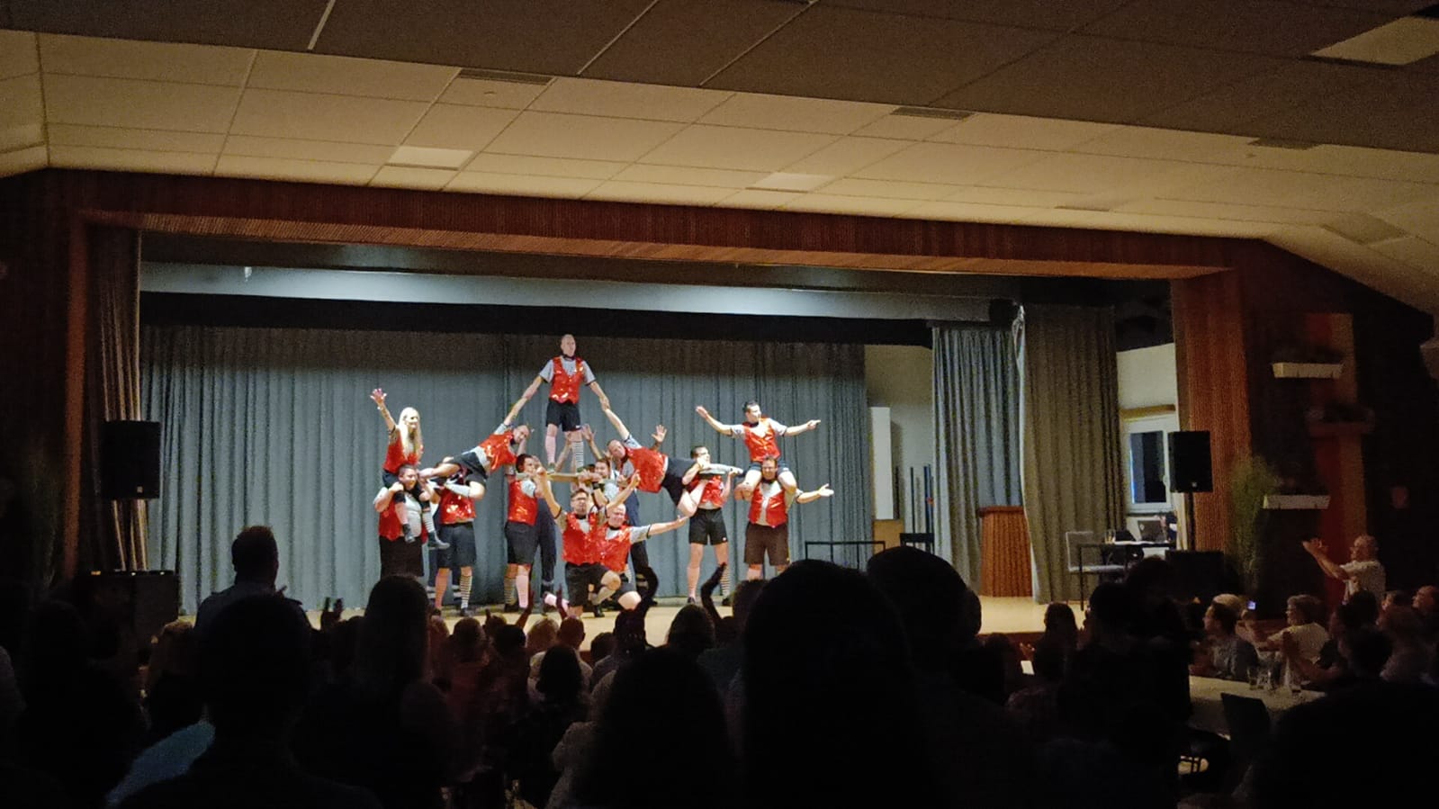 Freitagabend war der Saal des Dorfgemeinschaftshauses Schauplatz des Festkommers, bei dem die Vereine und Gruppen mit spaßigen und stimmungsvollen Auftritten für tobende Sitzreihen sorgten. Von Beginn an herrschte eine ausgelassene Stimmung und jeder Auftritt wurde ausgiebig gefeiert. Die Feuerwehr hatte den letzten Auftritt des Abends. Nach dem Erfolg der Rocker beim letzten Dorffest war es wieder ein spektakulärer Tanz, der uns bereits im Vorfeld wochenlang Schweiß und (Lach-) Tränen gebracht hat. Diesmal wurde unsere Claudia ordentlich durch die Luft gewirbelt.